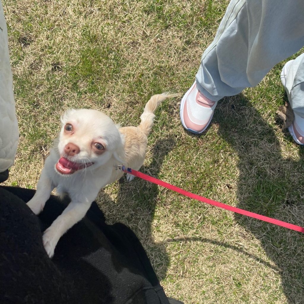彼氏も平日がお休みなので、一緒に休みの日を合わせて犬の散歩に近くの公園に1時間ぐらい行きます。
