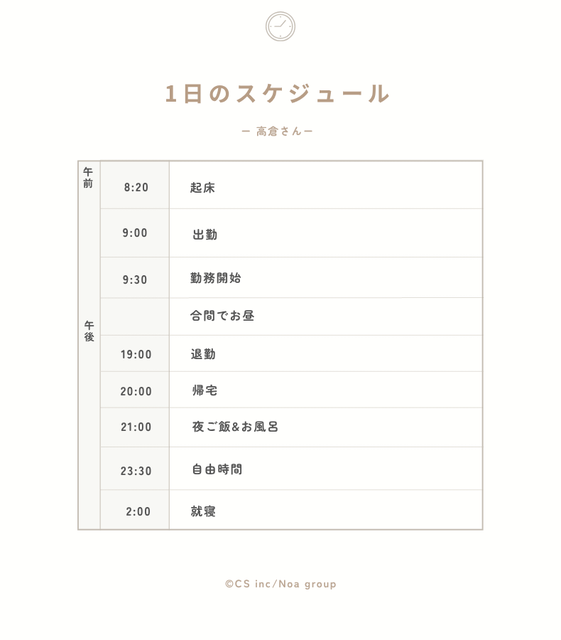 それに対して、Noa Groupはしっかりした研修制度と話を聞いたときに一番自分が働いている姿を想像できたので決めました。
