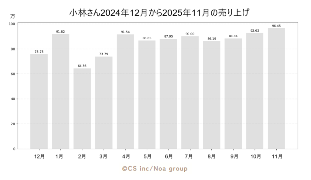 2024年12月から2025年11月の売り上げ