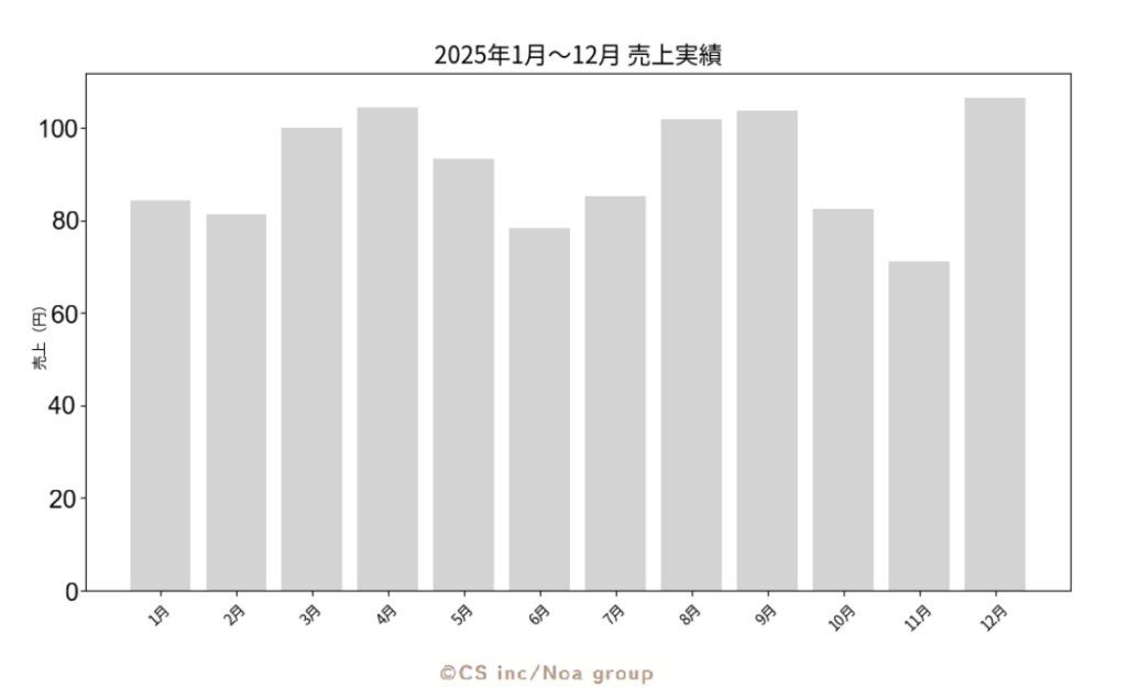 2025年1月から2025年12月の売り上げ