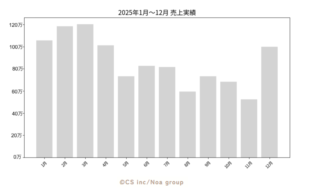 2025年1月から2025年12月の売り上げ